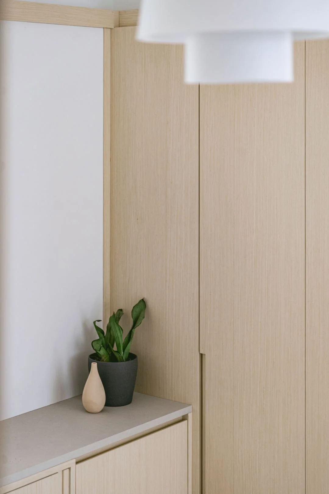 With the sunlight permeating from the outside, the apartment is delighted with warmth infiltration wherewith the immersive lighting is designed. While enjoying the sea view, mild material palette that brings tranquillity to the environment is also deployed, composing a symphony of nature.